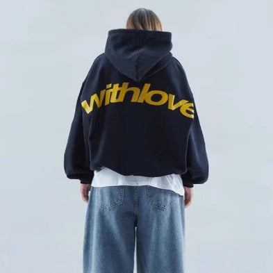 落肩款大码跨境秋冬季男女士潮流运动时尚休闲套头连帽衫情侣卫衣