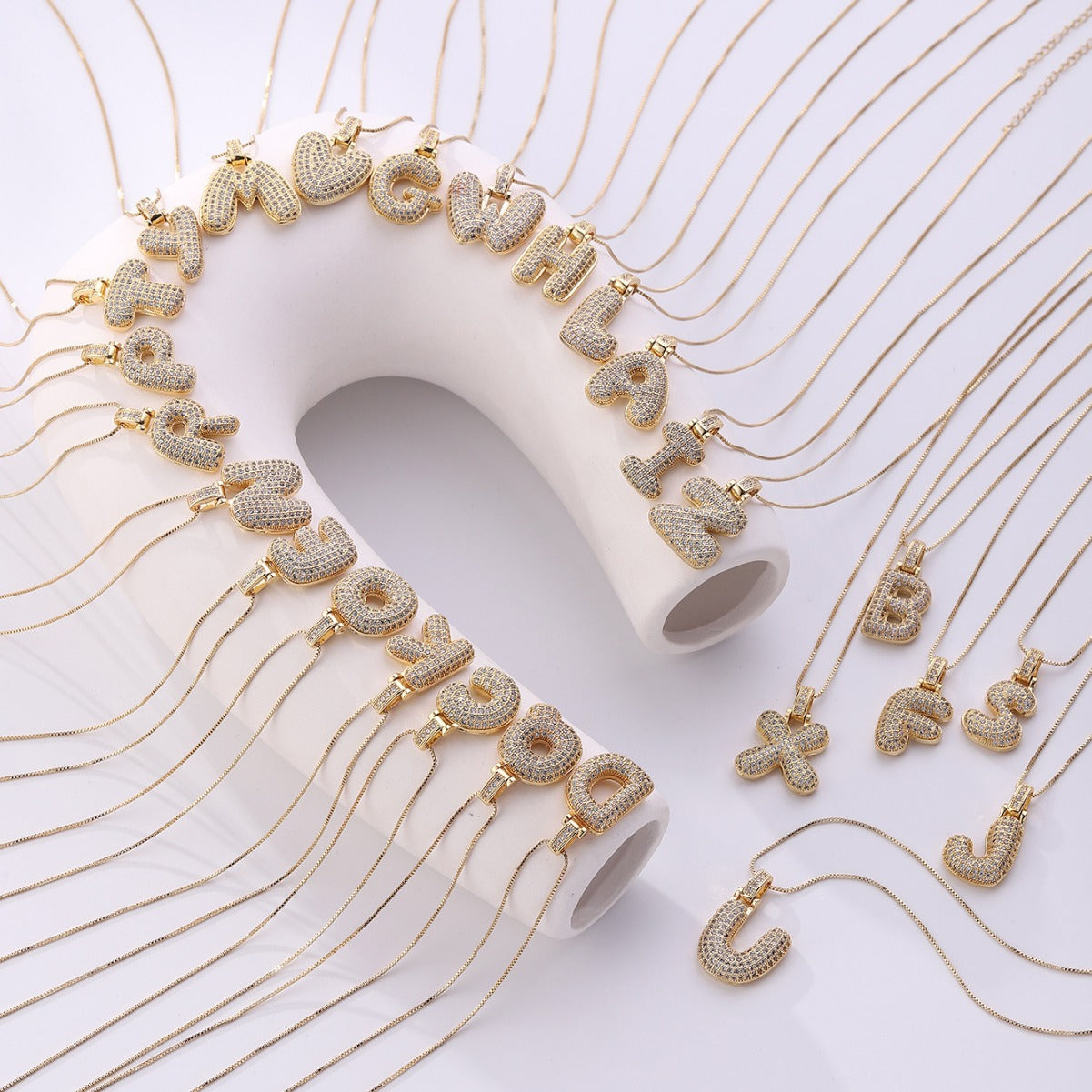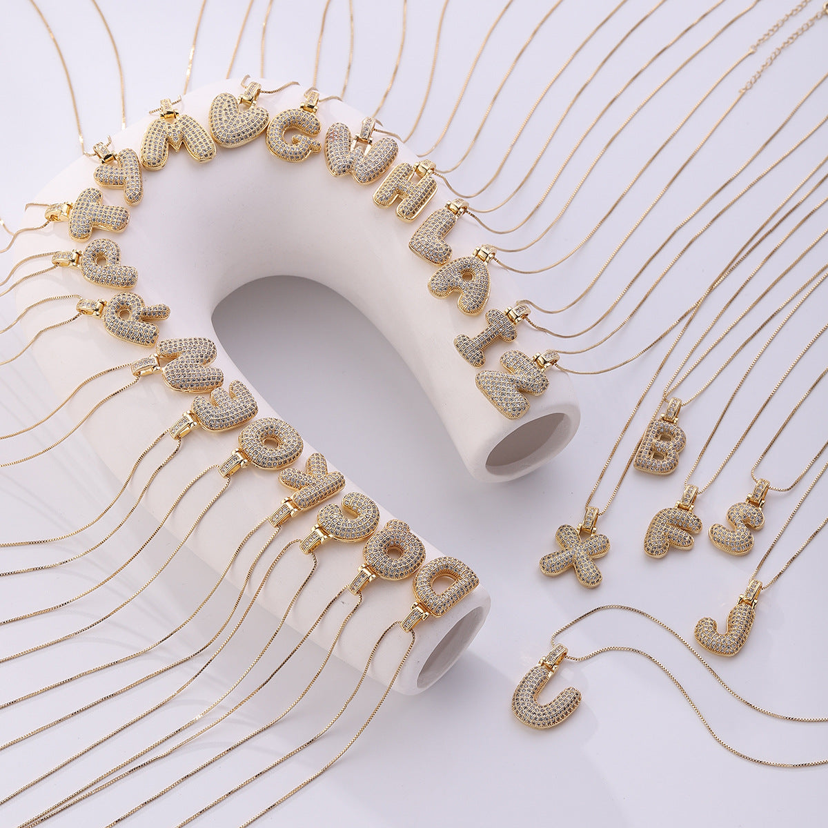 跨境嘻哈铜微镶锆石26个英文字母吊坠说唱时尚胖字母吊坠配件批发